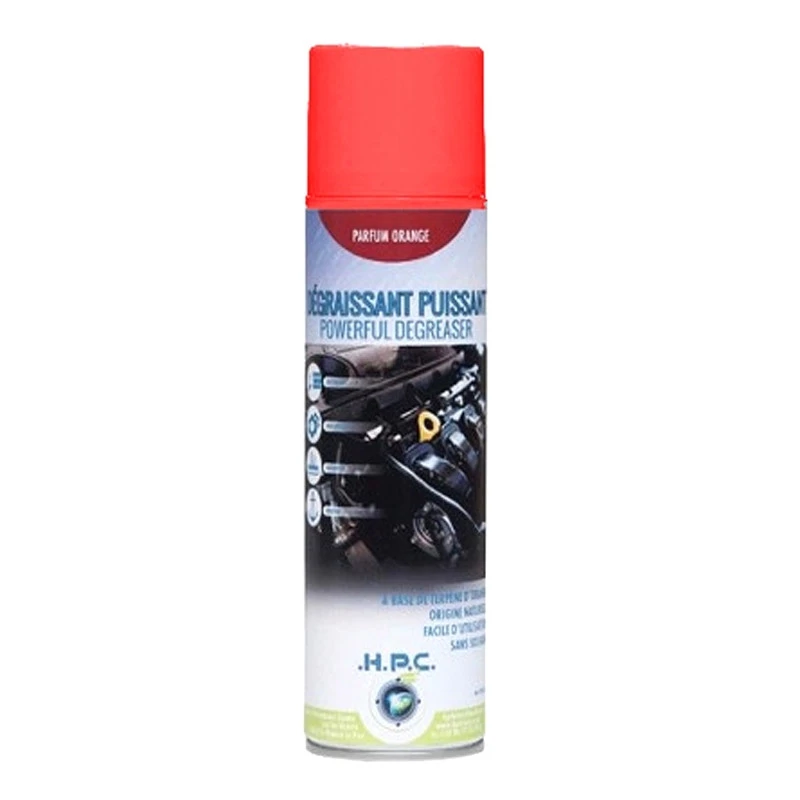 D’origine naturelle au parfum d’orange, il ne contient aucune trace de solvant pétrolier, il agit comme une dissolution rapide sur les graisses, les huiles, le cambouis, les résines, le goudron, la cire et les tâches d’encre. Ce spray dégraissant est très utile dans les ateliers de maintenance, les garages et dans les milieux industriels pour les dégraissages à froid des pièces mécaniques.
