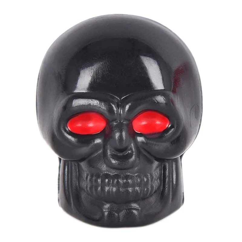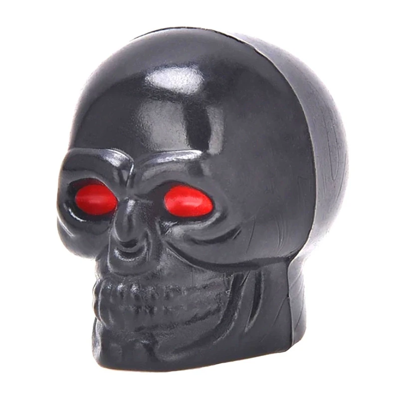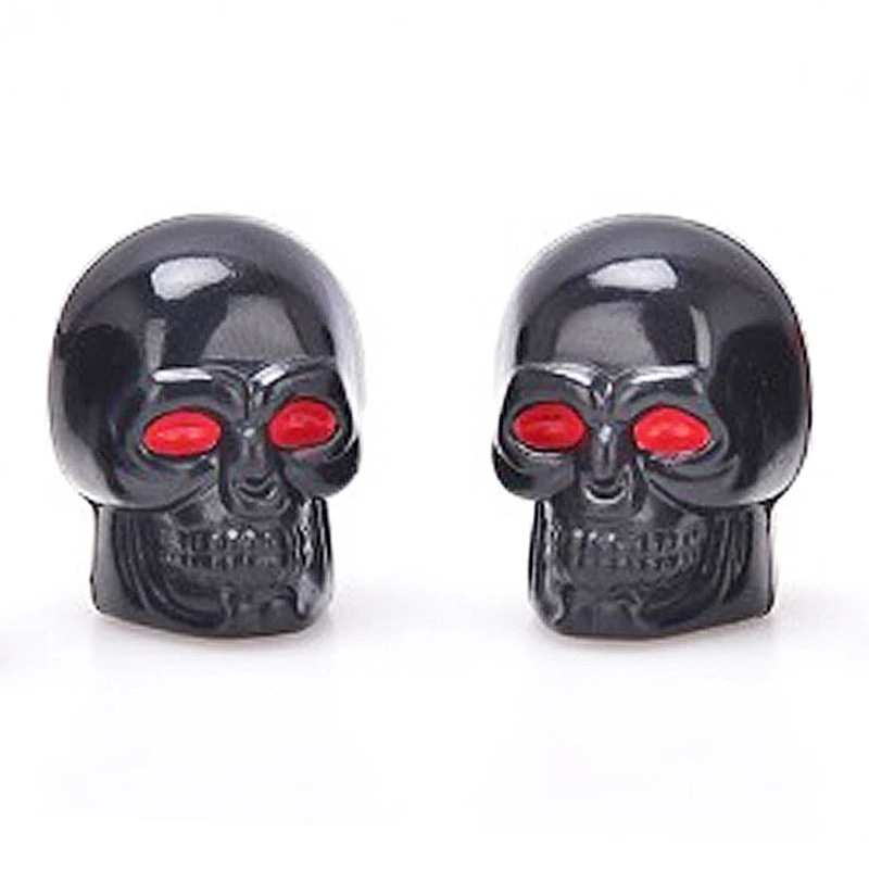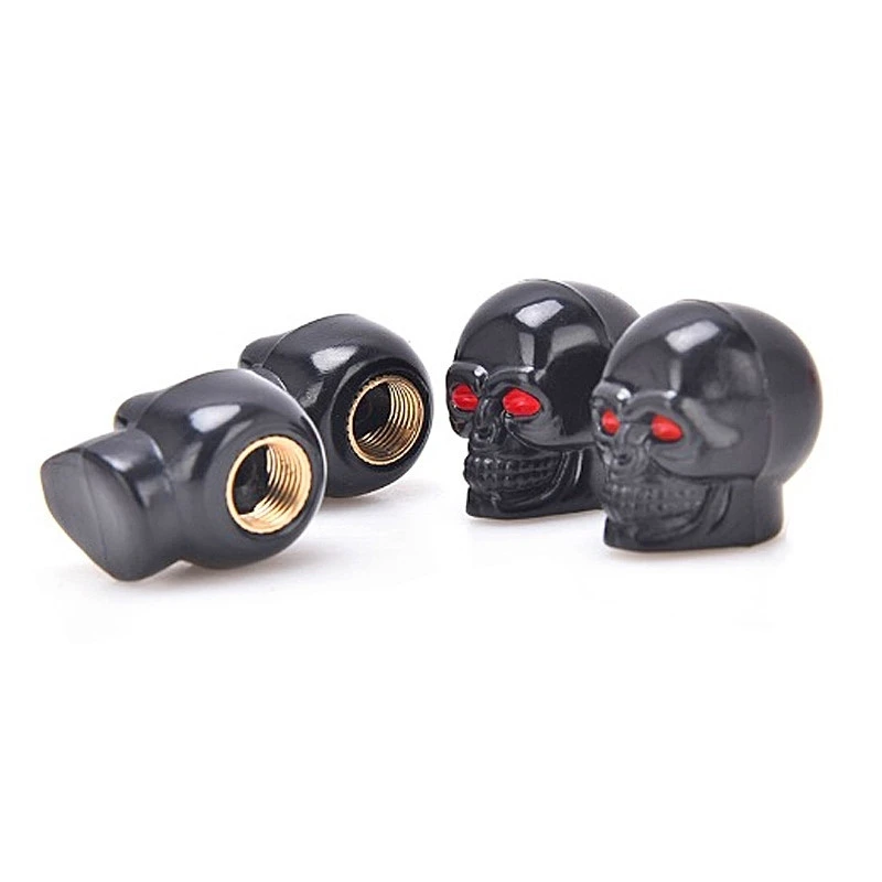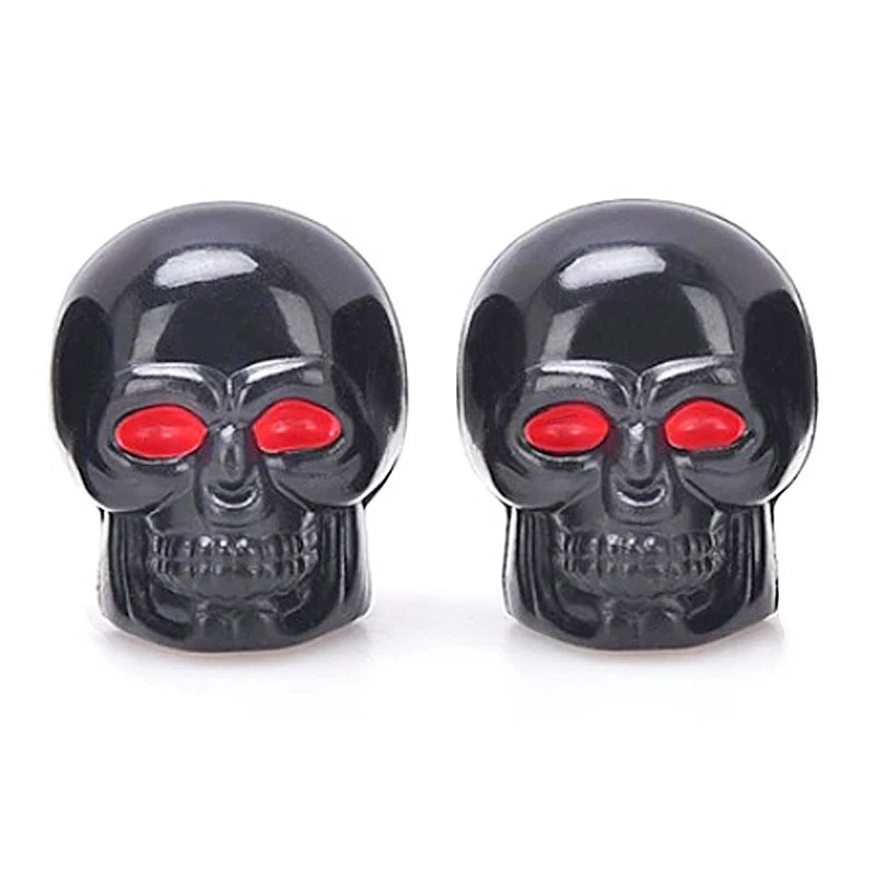 Customiser son vélo passe aussi par les valves de roues, ces bouchons en forme de tête de mort noir avec yeux rouge permettent finition personnalisée sur valve Schrader sur VTT, BMX, vélo de ville, Beach cruiser mais aussi voitures, véhicules tout terrain, camions, motos, scooter, quad.