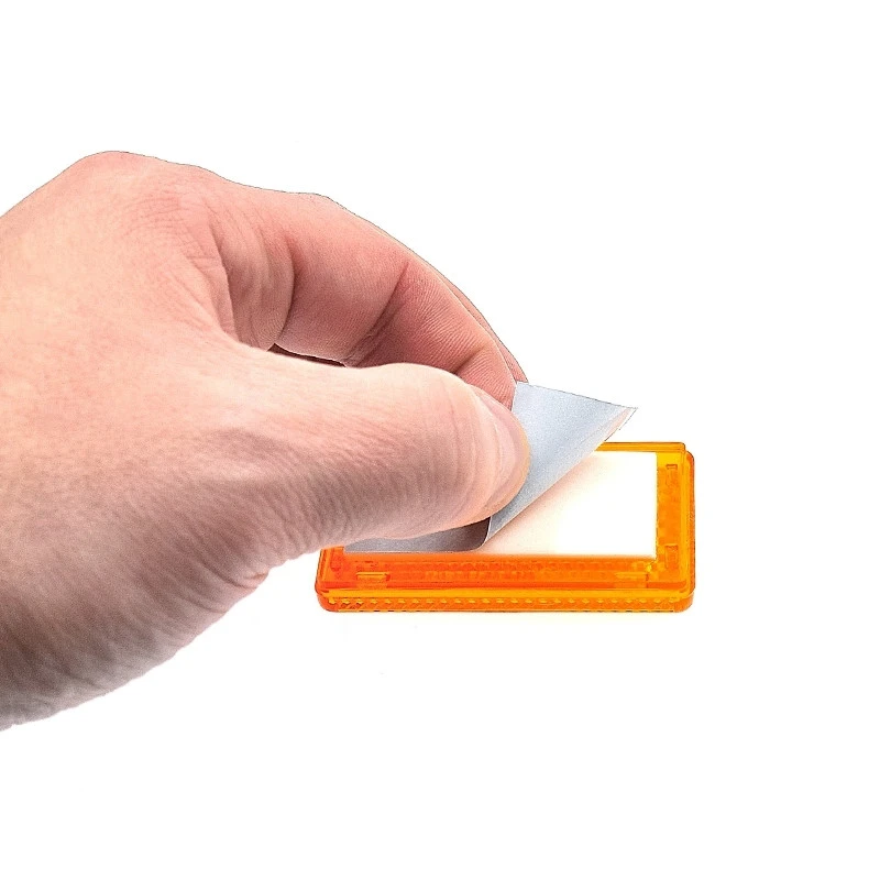 Ce catadioptre rectangulaire de couleur orange se fixe sur une surface plate à l’aide de sa bande adhésive. Idéal pour coller sur une remorque de vélo, un top-case, une sacoche rigide …