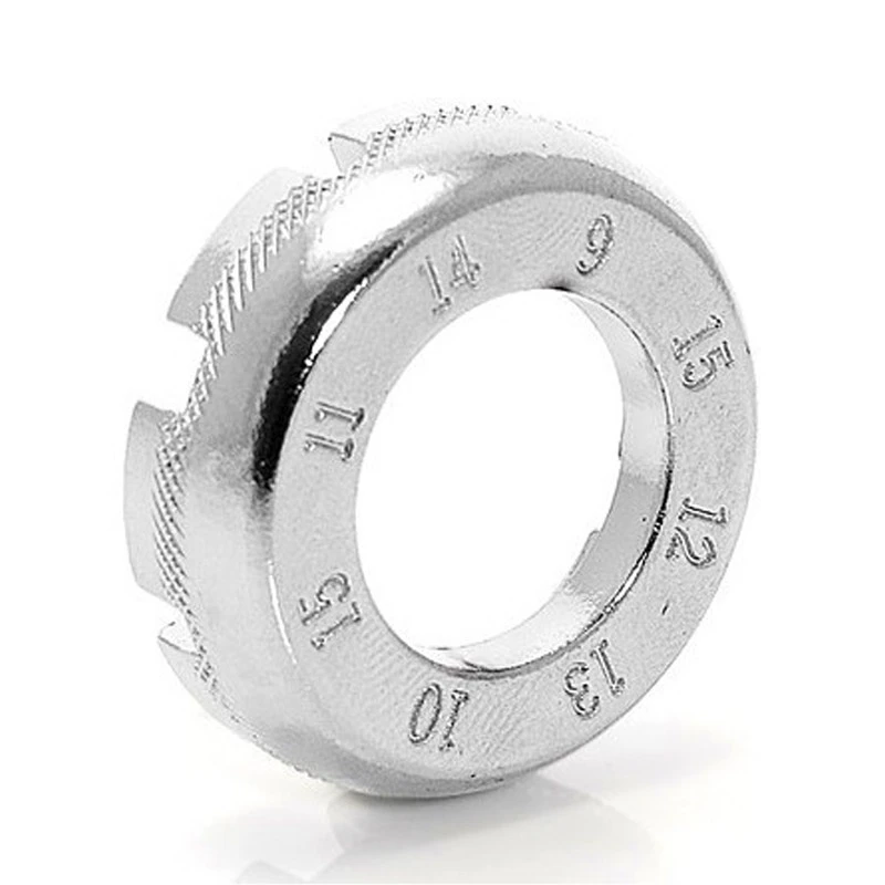 Clé a rayons universelle indispensable pour les différentes tailles de rayons jauges de 10,11,12,13,14,15 correspondant aux diverses tailles des écrous de rayons que l’on trouve sur les différents type de vélos.