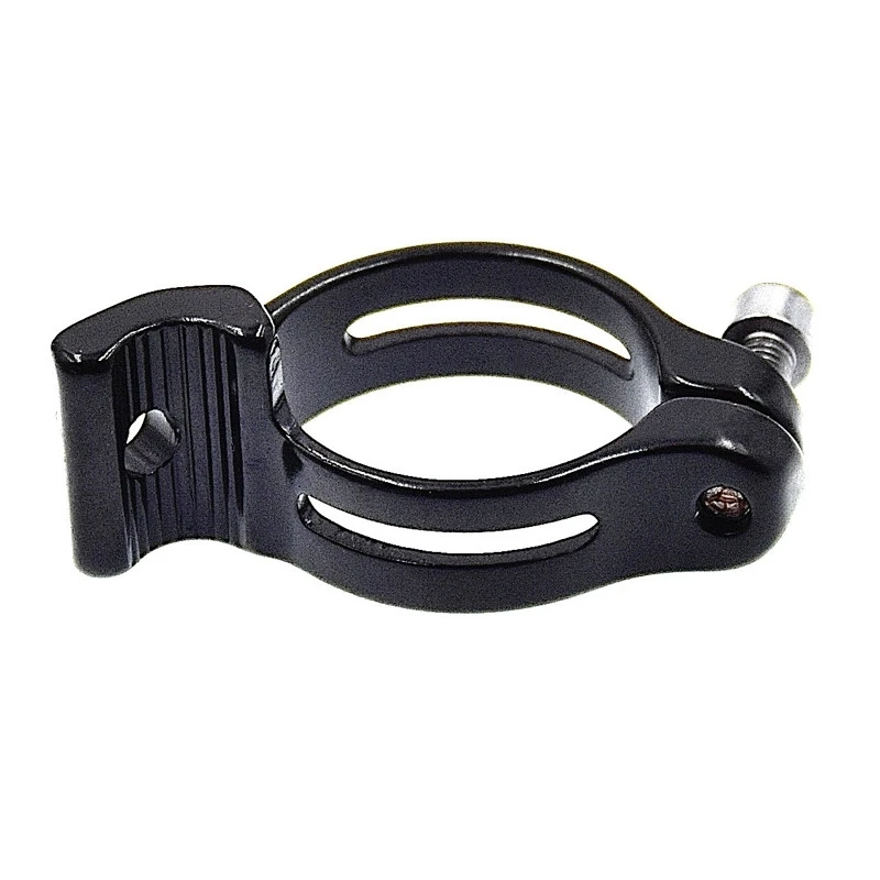 Collier Aluminium noir avec vis et rondelle inoxydable pour dérailleur avant de vélo.