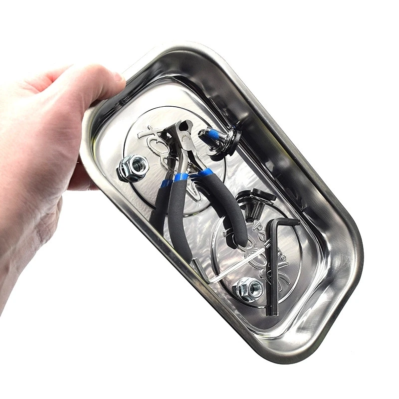 Ce bol dispose de deux gros aimants cylindrique dans le plateau en acier galvanisé, ce qui permet de retenir fortement tous les petits objets métalliques comme les outils, pièces de vélos …