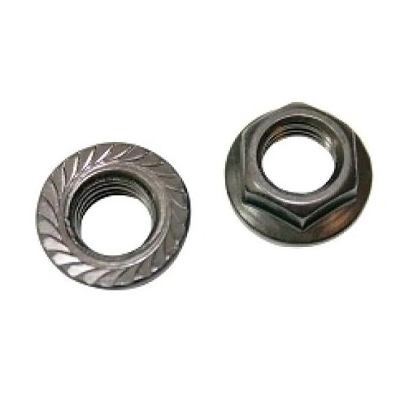 La base crantée de cet écrou pour axe de 10 mm permet à l’écrou de ne pas se dévisser sous la force exercée par la manivelle.