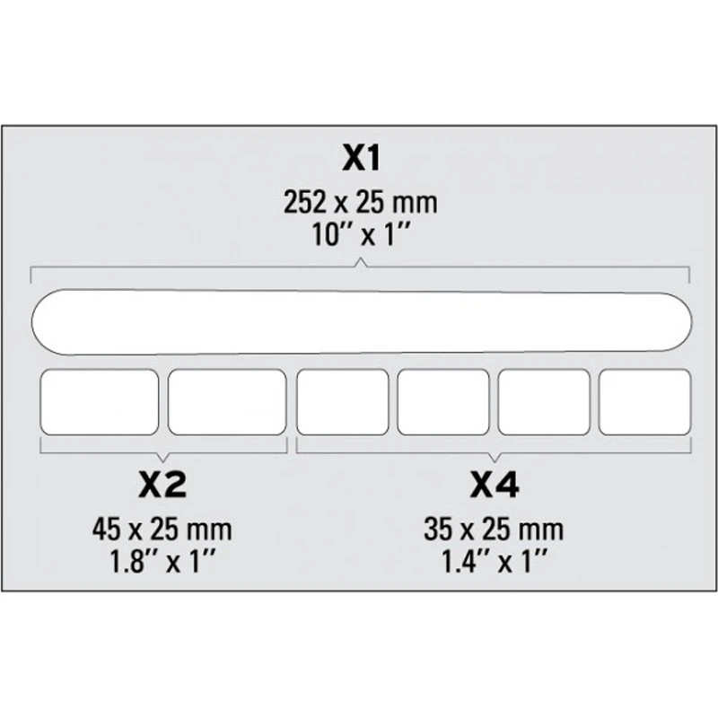 - 1 bande pour la base + 4 pièces 25 x 35 mm + 2 pièces 25 x 45 mm