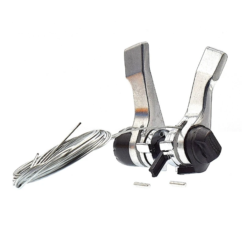 Les manettes sont compatibles avec le dérailleur Tourney 6 et 7 vitesses. Elles sont livrées pré-équipées de 2 câbles de 2,25 m et 2 embouts.