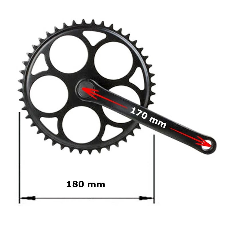 Avec son plateau à 44 dents et ses manivelles de 170 mm de long, il convient avec les transmissions singlespeed de dimension 1/2 x 1/8.
