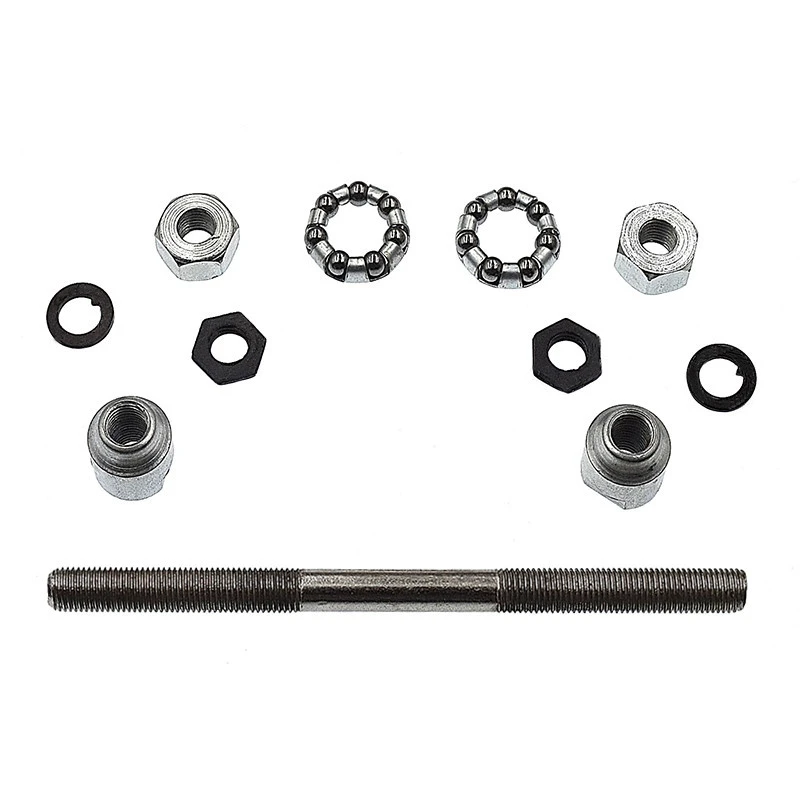 L’axe dispose d’un dimaètre de 5/16″ et s’installe à l’intérieur du moyeu de la roue et se bloque à a chaque extrémité par l’usage d’écrous et rondelles fournis.