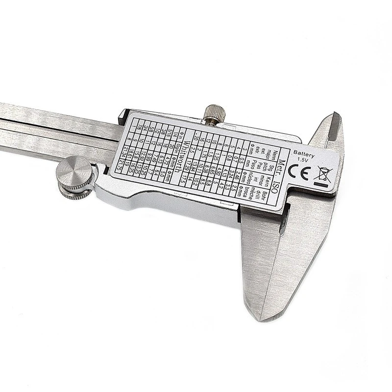 - Pied à coulisse numérique à quatre fonctions : mesures internes, externes, de profondeur et d’épaulements.