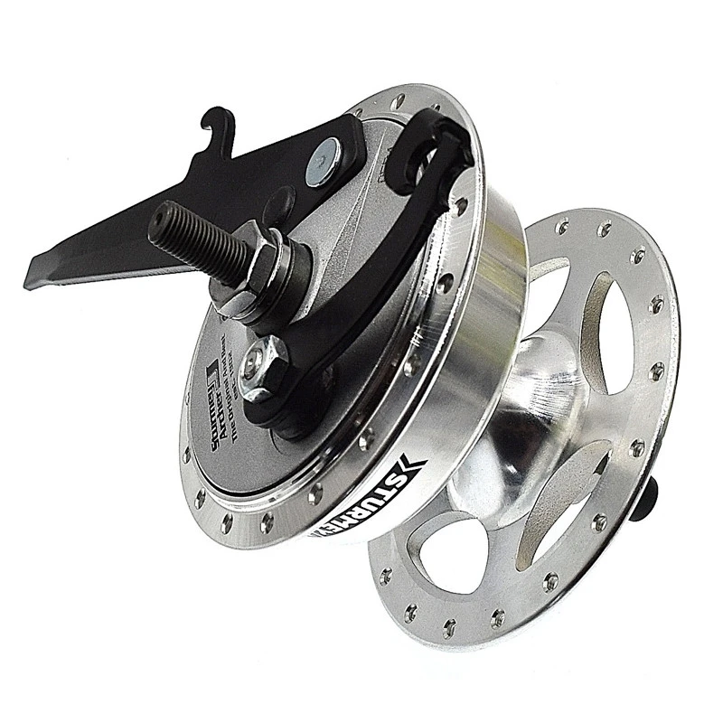 Ce moyeu est usiné en Aluminium de haute qualité avec roulement à billes industrielle, frein à tambour 90 mm et câble bowden.
