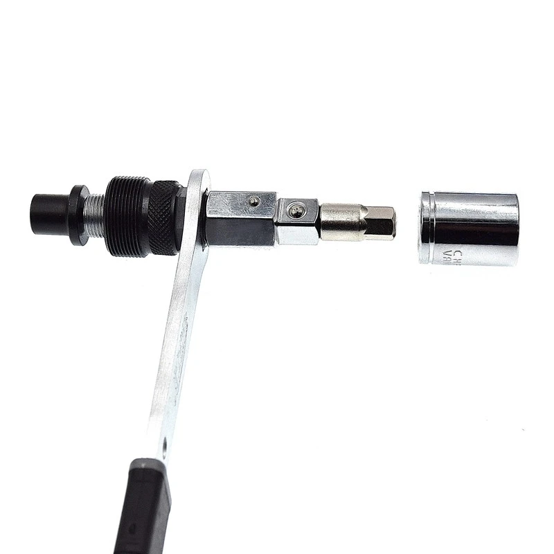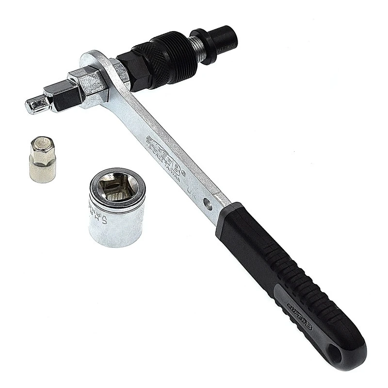Pour axes carrés, Shimano splined octalink et ISIS, Clé plate de 14 mm, Clé allen de 6 et 8 mm.